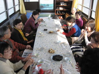 船内での一こま | タコヤキを美味しく頂いています。 |
