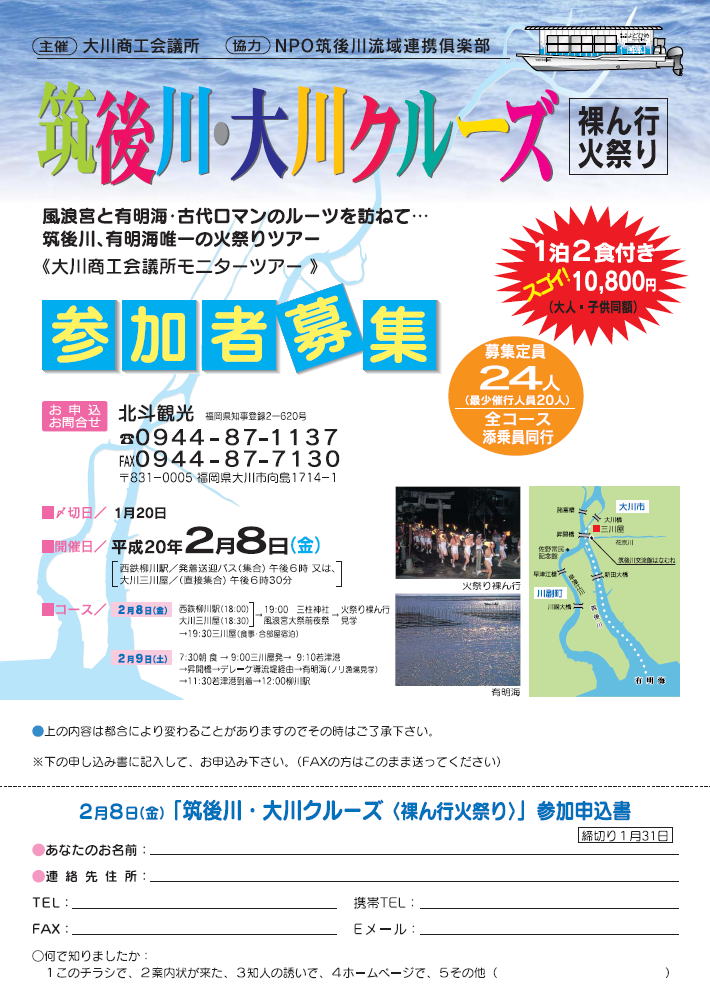 平成20年開催 筑後川クルーズ 裸ん行火祭りと筑後川クルーズ の御案内