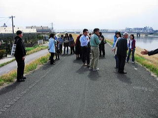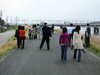 のだめが一人で口笛を吹いていた場所です。 護岸に腰掛けた「のだめ」と同じポーズで写真を撮る参加者も大勢いました。 ![]() |