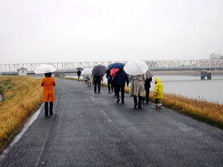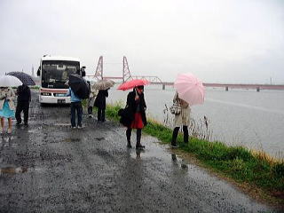 | 2日目は残念ながら雨のツアーとなりましたが、雨の中でもロケ現場に降り立って記念撮影をされていました。(のだめファンは少々の雨にも負けません) | ||||