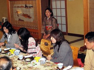 この日の食事会場は、なんとロケのカメラリハーサルが行われた場所でした。撮影当時の裏話や秘話が「おかみさん」から語られて、参加者は「思わぬ話が聞けて大満足」と喜んでいただきました。 |