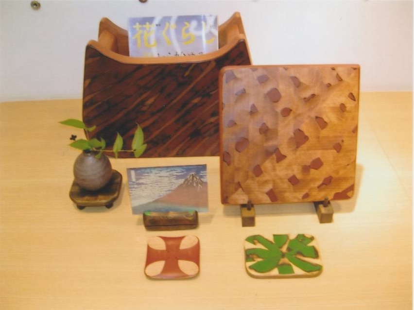 上の写真以外にも、木のもつ優しさを生かしてデザインした小テーブルなどの小物家具や、インテリア雑貨など様々な品種の商品を創作しています。