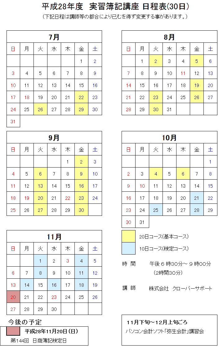 > 簿記講座日程