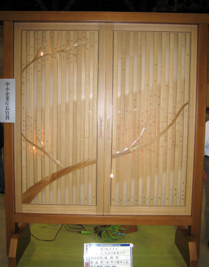 | 富山県富山市で平成19年6月8日から10日まで開催された全国建具展示会での入賞作品のうち、大川建具組合から出品したものの一部を掲載しています。 今回の展示会でも数多くの入賞作品をだし、大川建具の技術力、デザイン力を証明してきました。 写真ではありますが、その技術力、デザイン力を堪能していただければと思います。 |