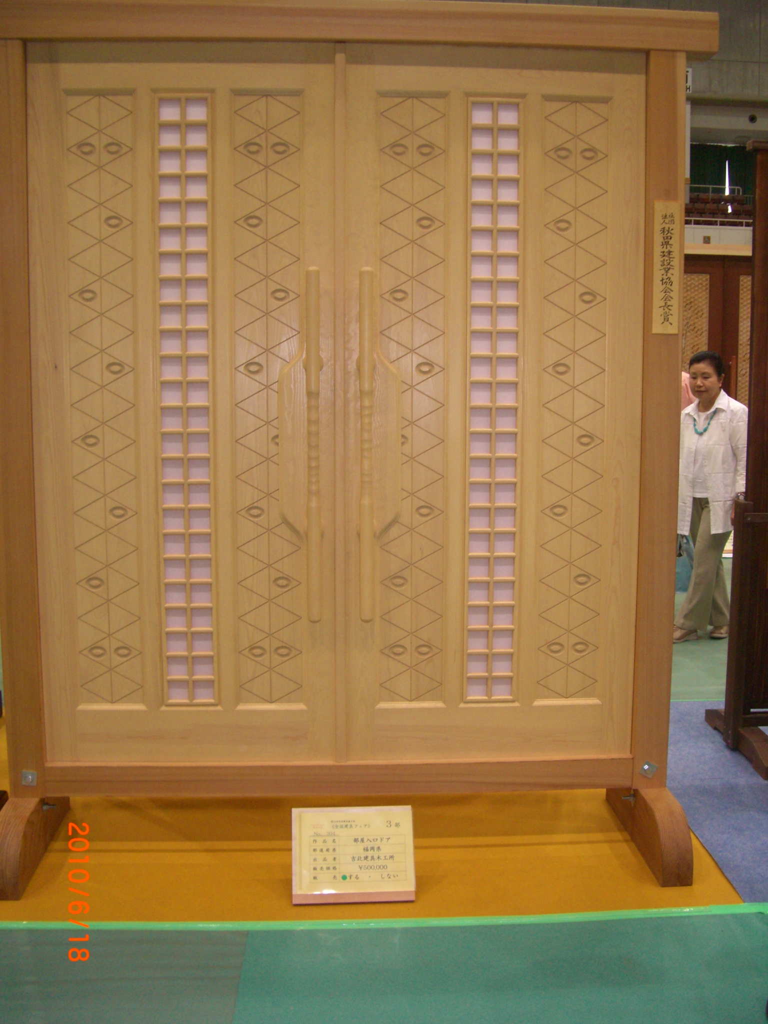 | 秋田県秋田市で平成22年6月18日から20日まで開催された全国建具展示会での入賞作品のうち、大川建具組合から出品したものの一部を掲載しています。 今回の展示会でも数多くの入賞作品をだし、大川建具の技術力、デザイン力を証明してきました。 写真ではありますが、その技術力、デザイン力を堪能していただければと思います。 |