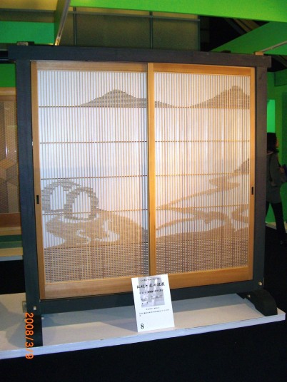 | 平成20年3月4日(火)〜9日(日)に福岡県太宰府市の九州国立博物館にて「大川建具・彫刻・創作家具 伝統と匠の技展」が開催されました。家具の名産地・大川市の建具、彫刻、家具の職人達が手がけた芸術品ともいえる作品が九州国立博物館エントランスホールに展示され、大勢の来場者に見てもらうことができました。 九州国立博物館で展示されました作品を、建具作品に限定していますが掲載しています。 大川の匠たちの繊細で美しい技を感じていただければと思います。 |