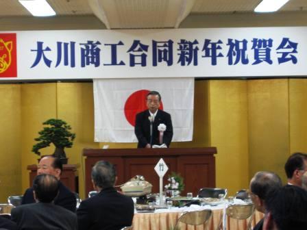 大川各地の商工業者の方で会場は一杯であり、あちこちで新年の挨拶が交わされていました。 | ||