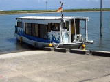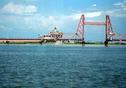 寿さん、昇開橋の存在感やその構造にびっくり! 獲れたてのイイダコで作る「のり巻きタコ焼き」に大満足の様子でした。 |