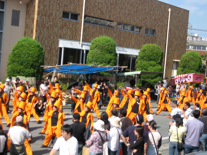 | 「山田組」の皆さん | 鹿児島から友情出演のジャズダンスクラブ「山田組」の皆さんです。歯切れの良いダンスパフォーマンスで沿道の人々の目をひいていました。 | |